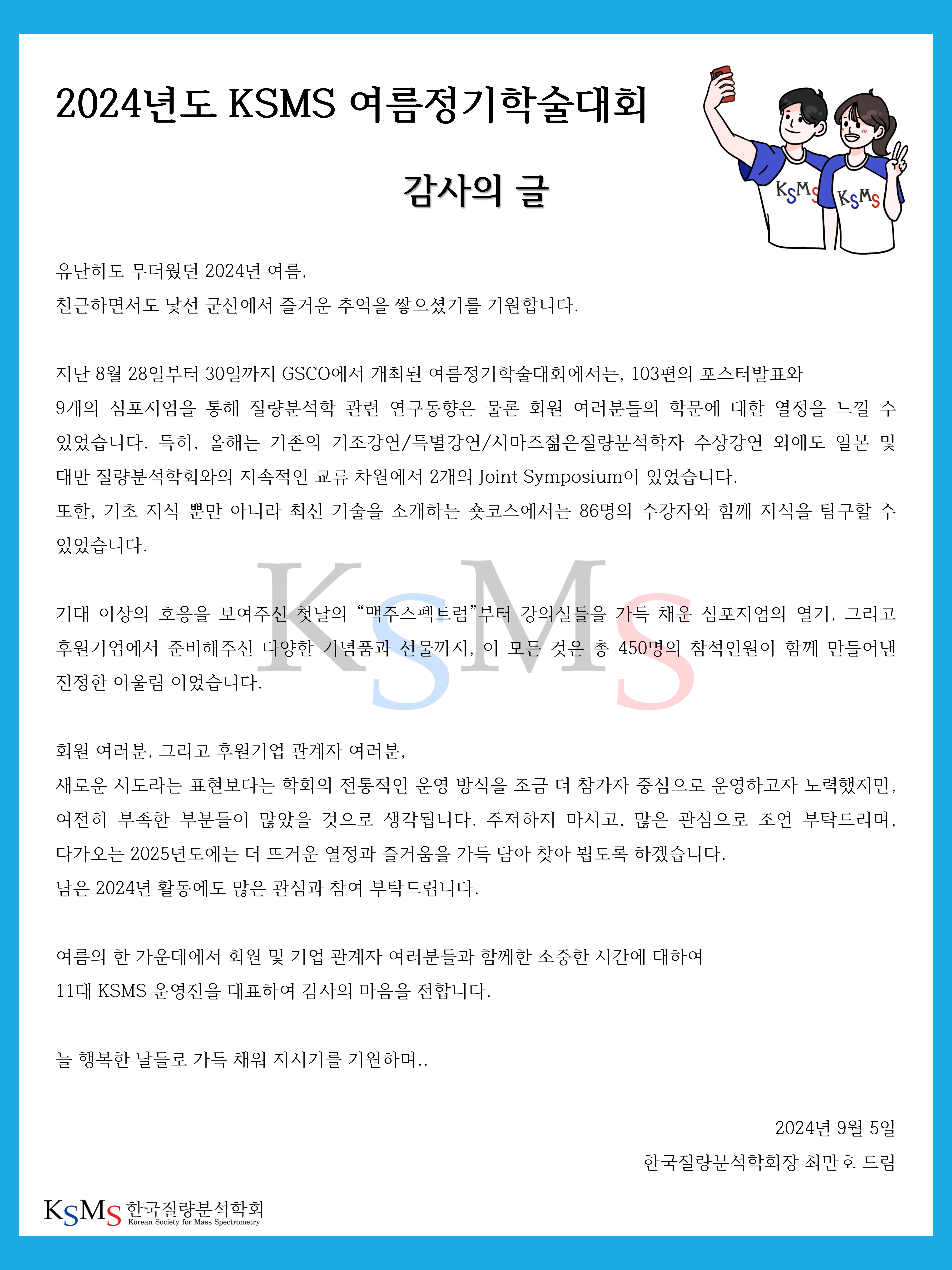 2024년도 여름정기학술대회 및 총회 참석에 감사드립니다.